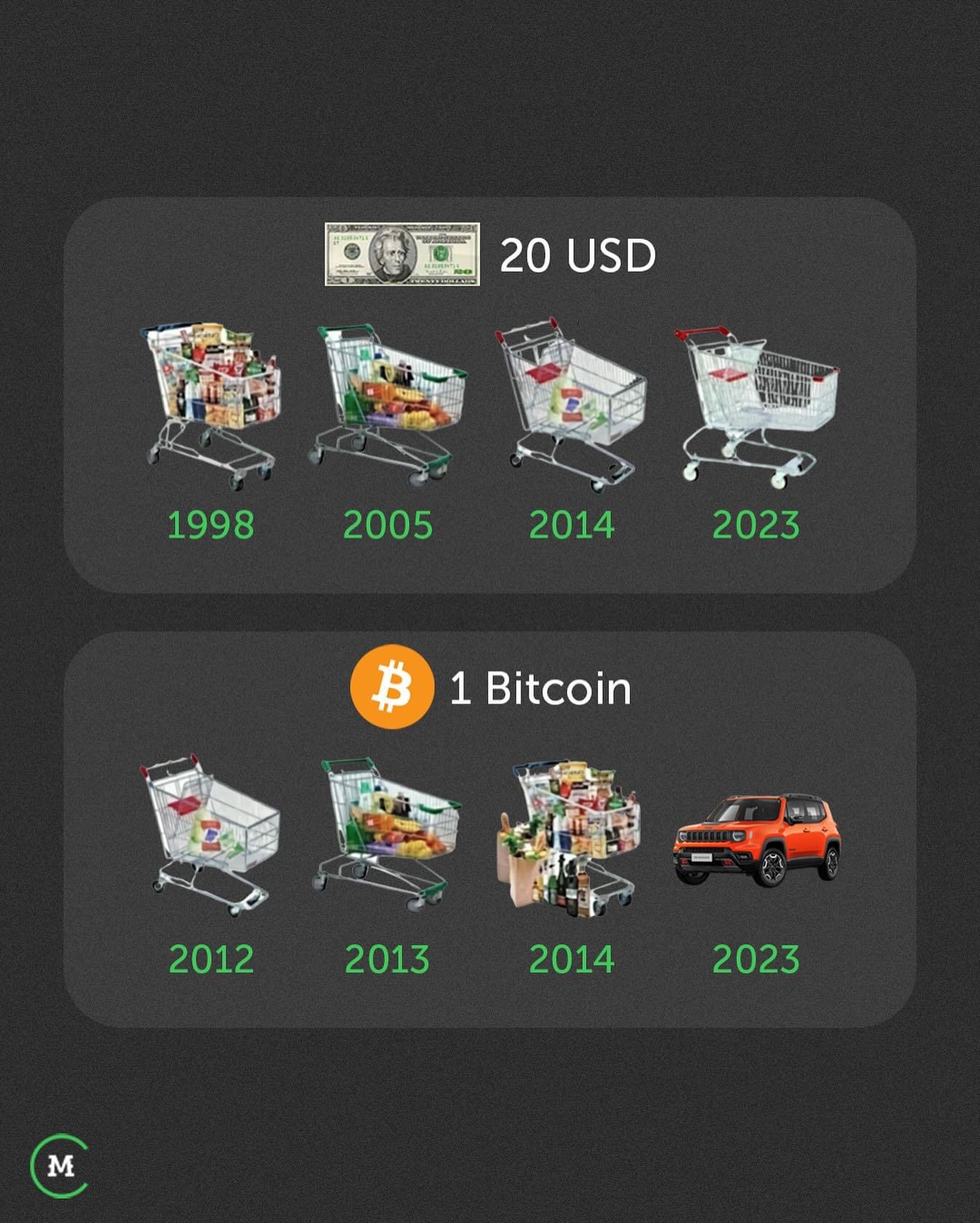 Here's an illustrative comparison that's fun and easy to understand. Traditional money, printed by governments in increasing amounts, loses value over time. Cryptocurrency, on the other hand, with a growing number of people using and trusting it, coupled with its limited supply, increases in value over time.
