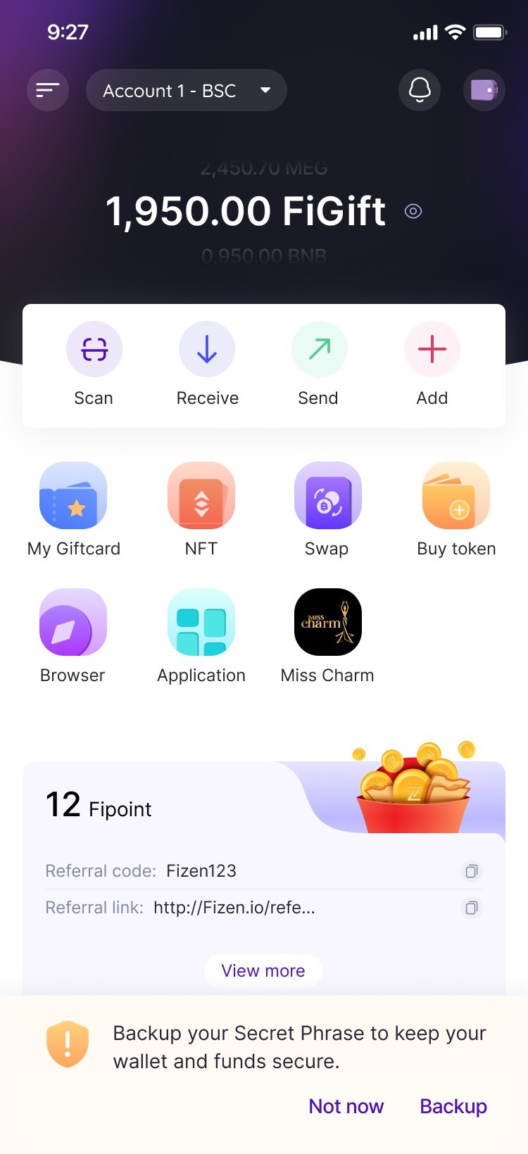 Step 2: Tap Scan. This button is accessible from the homepage, wallet page, token page, or connected sites page.