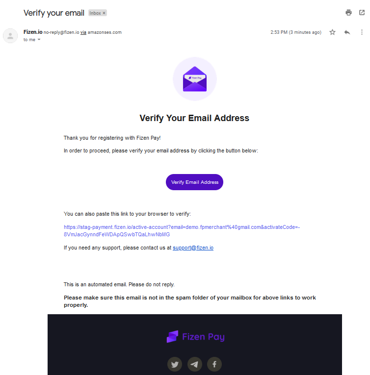 Find the email titled “Verify your email” sent from no-reply@fizen.io.