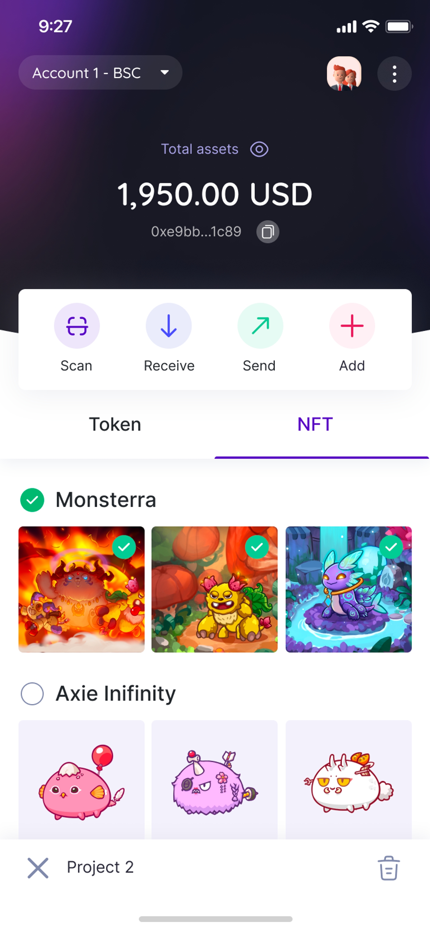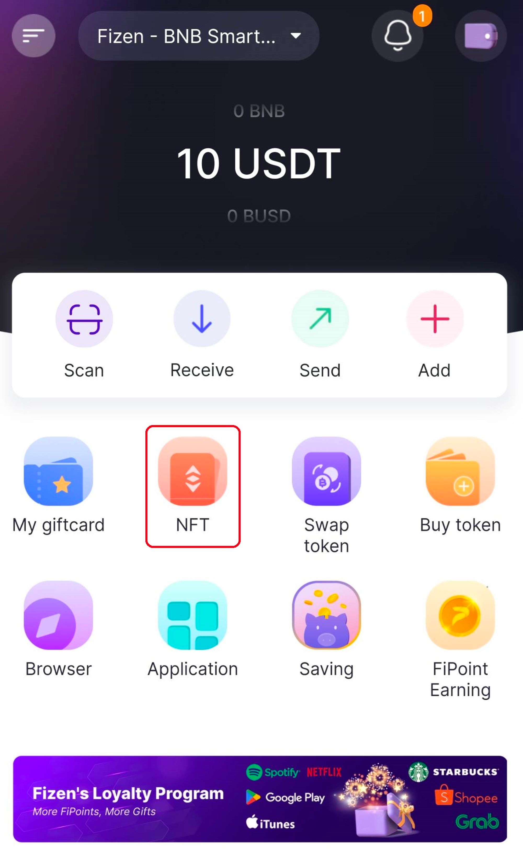 Step 1: To view your NFTs, simply tap the NFT button on the app's main screen.