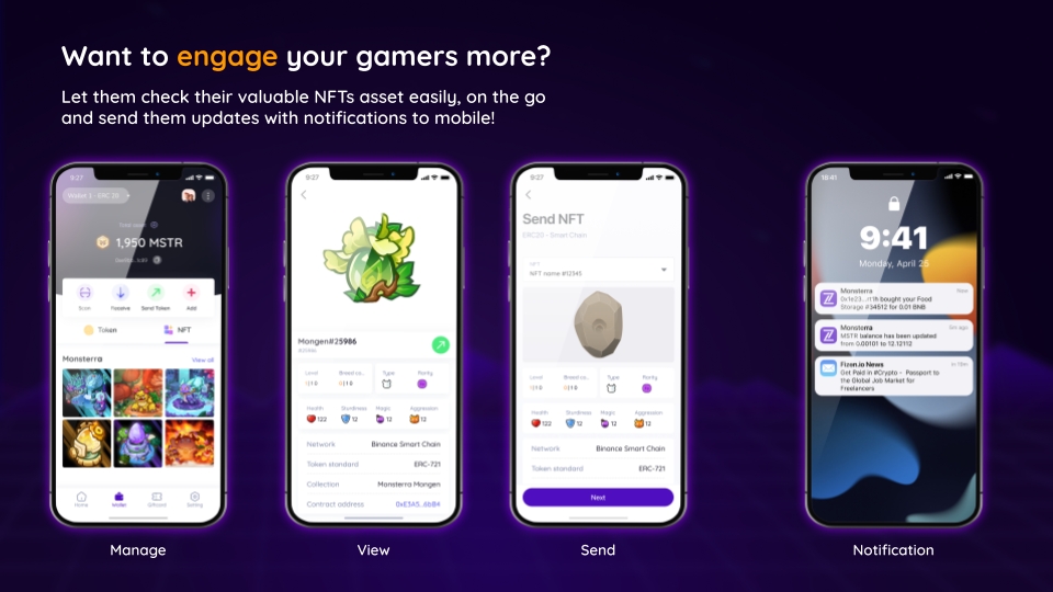 Even better, we support you in customizing NFT properties to make them display more appealing and help you send app notifications to your users.